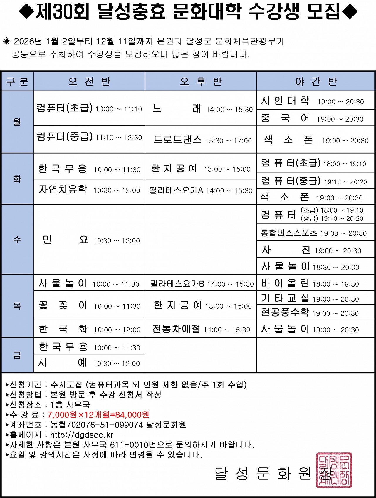 Copyright 2021 DALSEONG CUTURAL CENTER All Rights Reserved. Design by Artkorea.